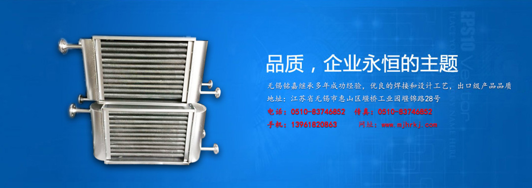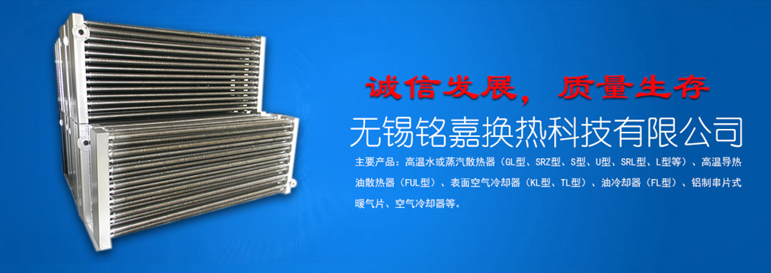 無錫銘嘉換熱科技有限公司是生產散熱器的專業工廠。 產品有:高溫水或蒸汽散熱器高溫導熱油散熱器表面空氣冷卻器、油冷卻器、鋁制串片式暖氣片空氣冷卻器翅片管換熱器